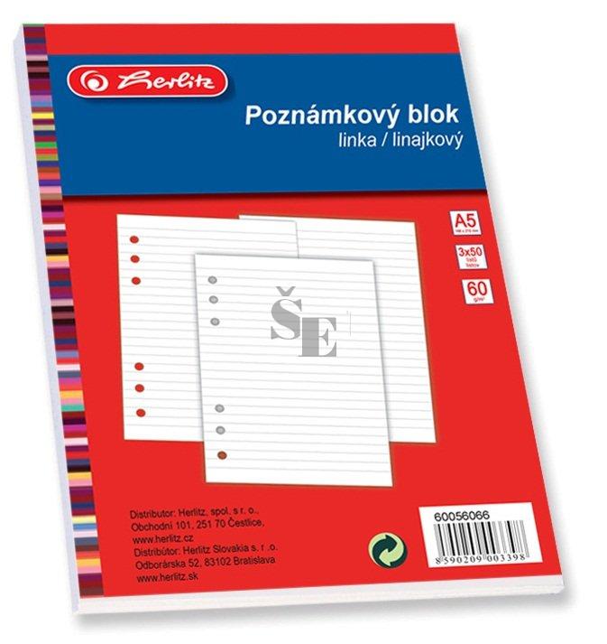 Rozměr 148 x 210, 50 listů, 3 ks, děrování, linka