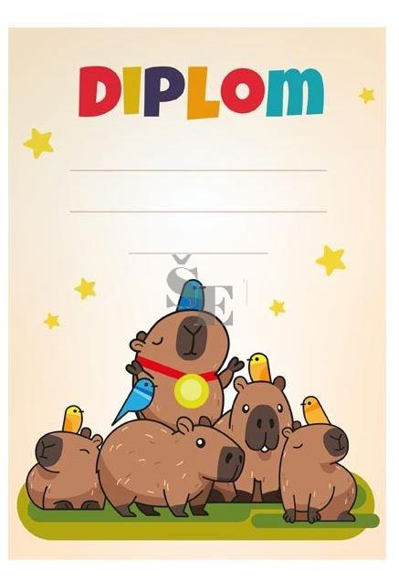Hledáte milý a originální způsob, jak odměnit děti za jejich snahu, účast nebo výhru? Barevný dětský diplom s roztomilými kapybarami a malými ptáčky je ideální volbou pro školky, školy, družiny, kroužky i tábory.