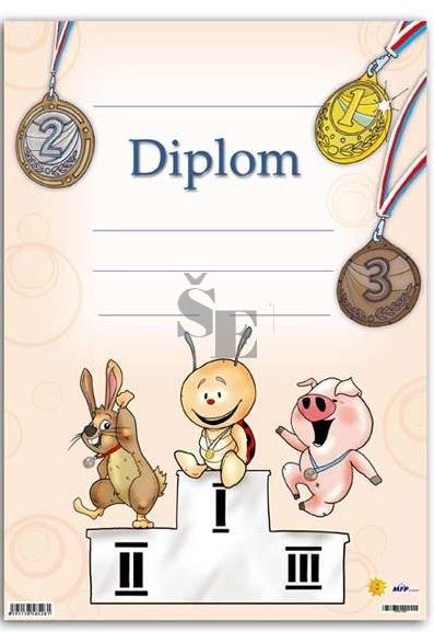 Barevný dětský diplom s obrázkem zvířátek - za každý dosažený úspěch je potřeba dostat písemnou listinu. Určený pro sportovní aktivity.