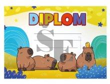 Hravý dětský diplom ve formátu A5 s motivem kapybar je skvělým způsobem, jak děti motivovat a ocenit jejich snahu, výhru nebo účast na společné aktivitě. Barevné pozadí a klidná atmosféra ilustrace působí mile a nenuceně – ideální volba pro děti předškolního i mladšího školního věku.