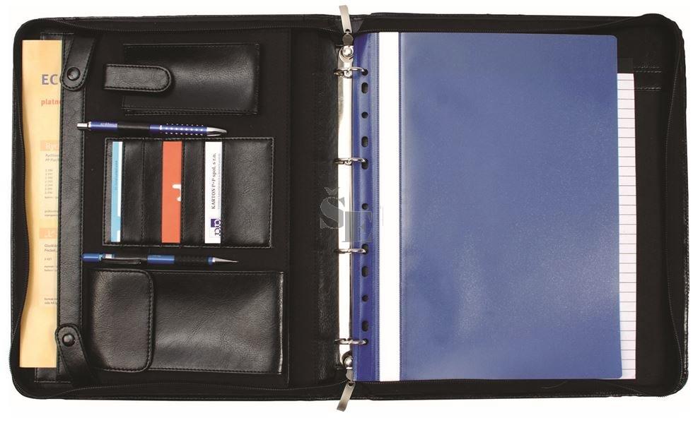 Top A4 složky s kroužkovou mechanikou, psací podložkou, kapsy na CD vizitky atd.