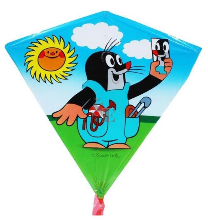 Létající plastový drak s obrázkem slavného Krtka. Balení obsahuje draka, konstrukci a vodící šňůru s úchytem.