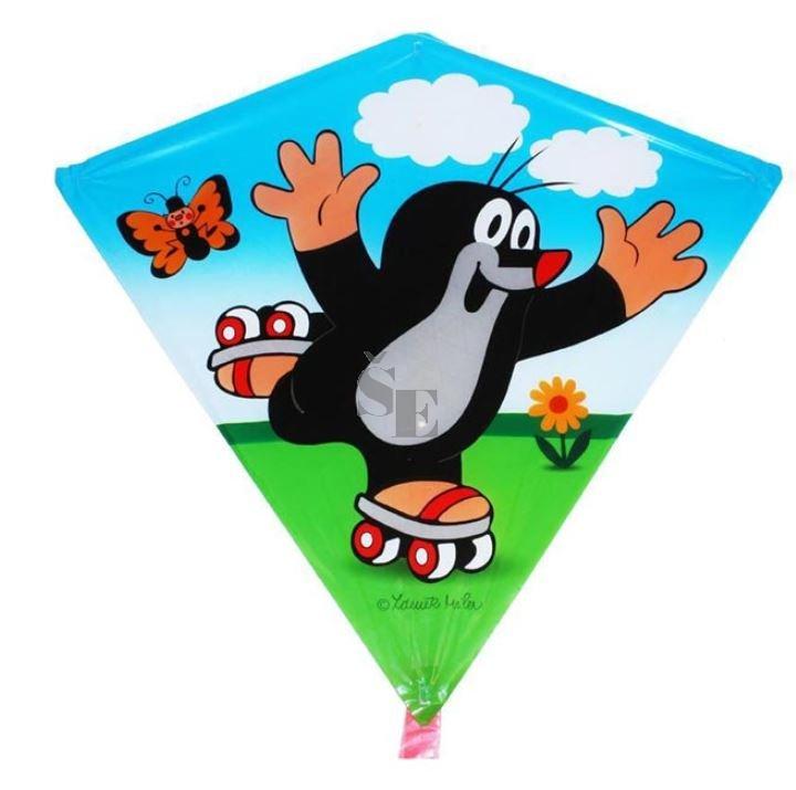 Létající plastový drak s obrázkem slavného Krtka. Balení obsahuje draka, konstrukci a vodící šňůru s úchytem.
