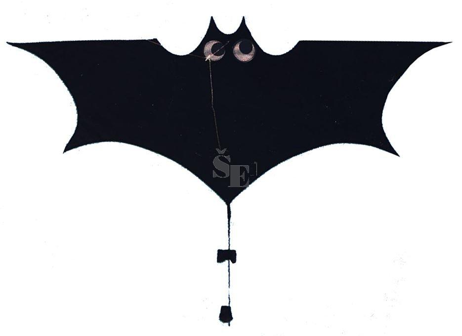 Létající drak o rozměrech 132x55 cm, kostra skelné vlákno, šňůra 30 m. Balení obsahuje draka, konstrukci a vodící šňůru s úchytem. Motiv: netopýr Rozměry: 132 x 55cm Materiál: nylon