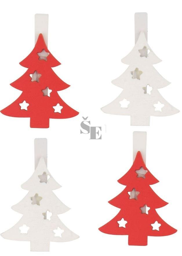 Stromeček dřevěný na kolíčku 4,5 cm, červená a bílá, 4 ks