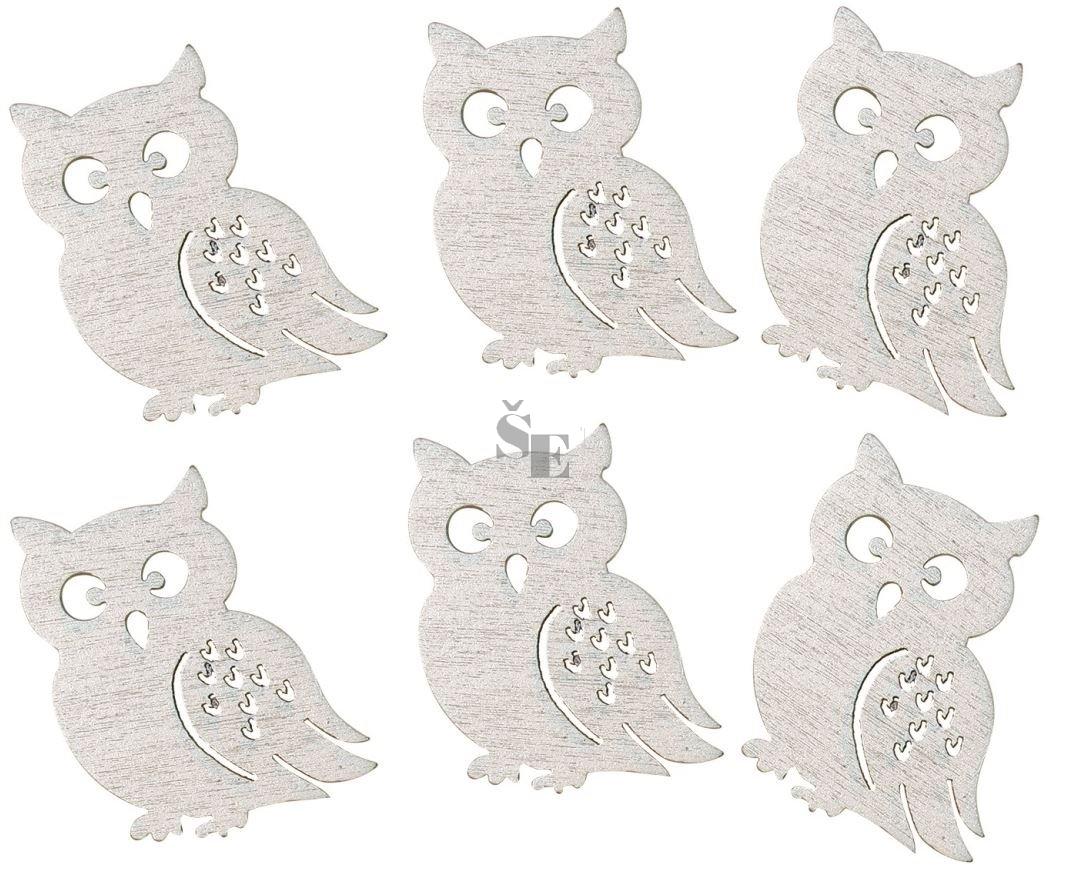 Sova dřevěná s lepíkem 4,5 cm, 6ks