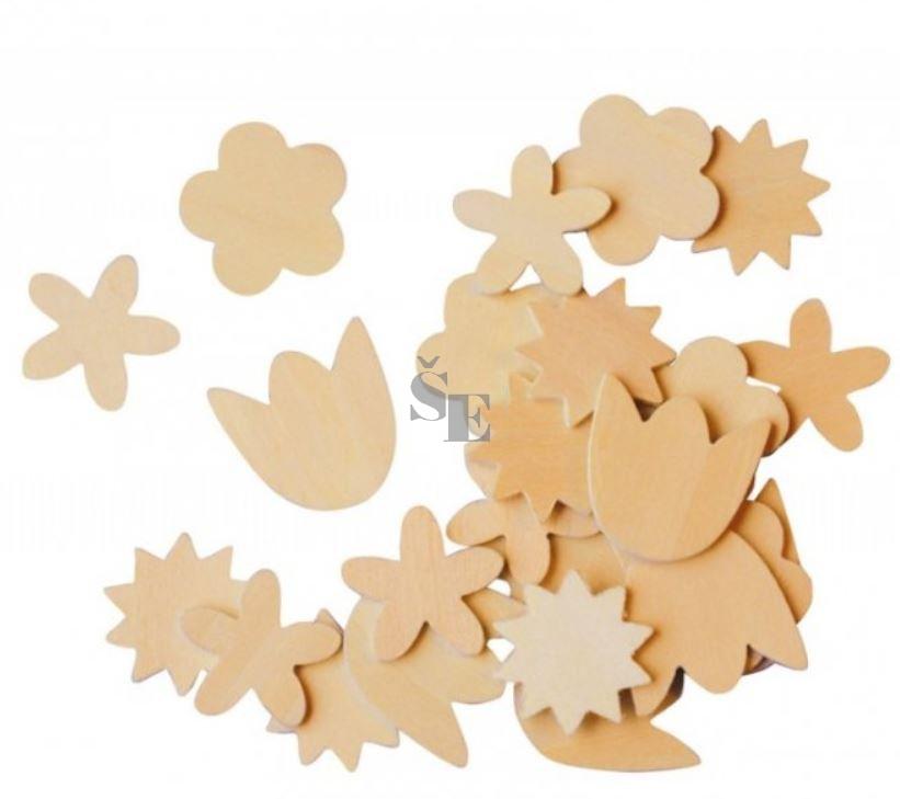 Dřevěné dekorace a obličeje, kolíčky, špachle, dřívka.....
