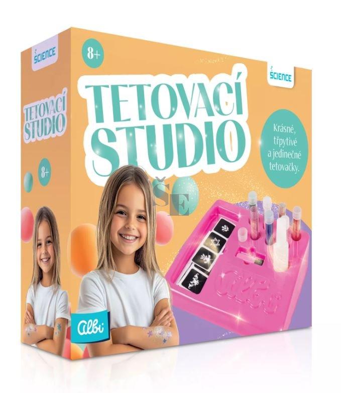 Kreativní sada Tetovací studio z edice Albi Science obsahuje 30 různých motivů na tetování, včetně tetování náramku na zápěstí, kotník, nebo paži.