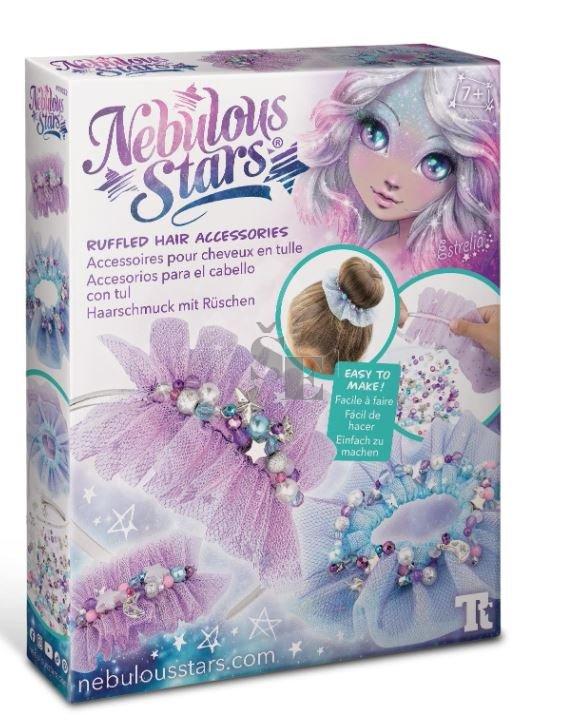 Nebulous Stars ozdoby do vlasů Estrelia. Vyrob si vlastní ozdoby do vlasů s třásněmi. Obsah balení - 3 tylové pásky, 1 čelenka, 1 spona, výběr korálků a přívěšků, gumičky, příběh, návod.