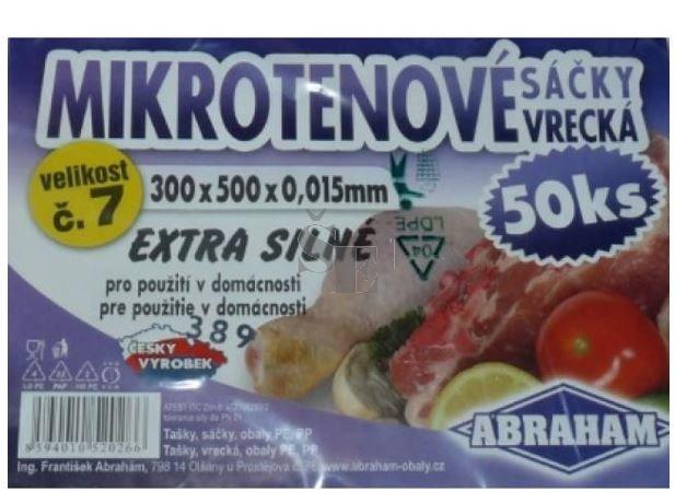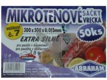 Kvalitní mikroténové sáčky vyrobené z pevné HDPE fólie 15 mic na trhacím bloku v závěsné liště.