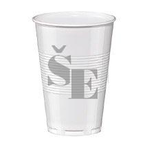 Kelímky plastové, bílé z recyklovatelného plastu pro chladné nápoje.