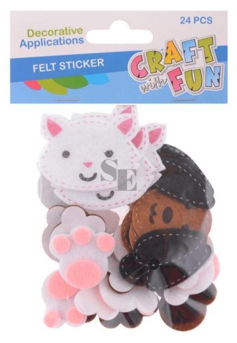 Filcové nálepky s motivem zvířátek - hlava psa, kočky a jejich tlapky.