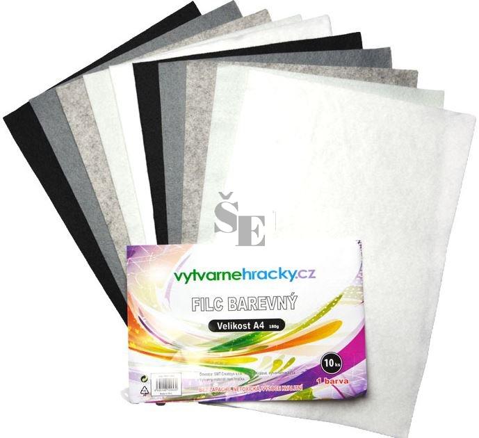 Filc A4 - černobílý mix, 10 ks, 2x černý, 2x šedivý, 2x melír, 4x bílý