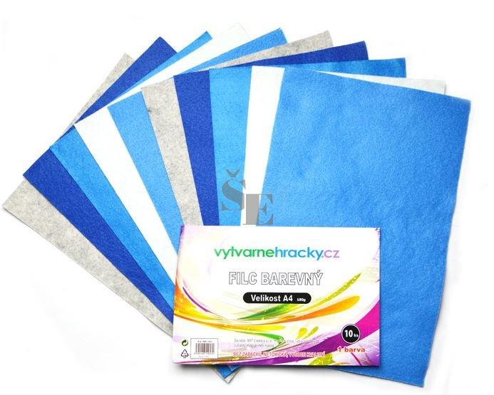 Filc A4 - modrý mix, 10 ks - 2x tm. modrý, 2x modrý, 2x sv. modrý, 2x melír, 2x bílý