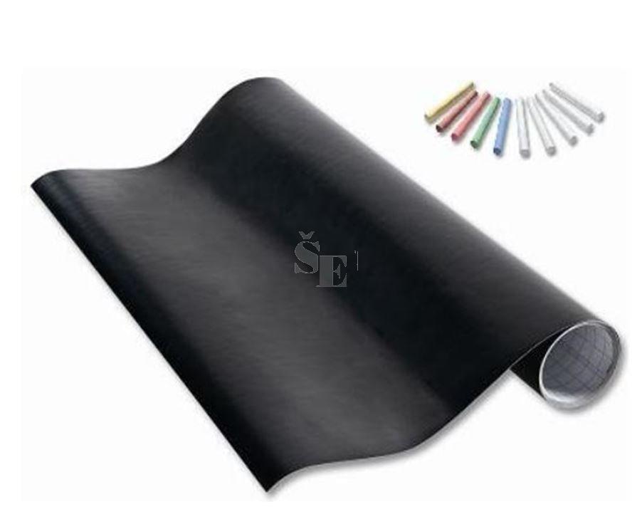 Černá folie např. pro dětské tabule, tabulky k bylinkám, kytičkám atp. Lepí se na hladký povrch, lze pohodlně stříhat. Na povrch se používají klasické křídy (součástí zásilky), či křídové fixy, které naleznete i v naší nabídce (kod f390509) Křídy v balení-barvy: 5x bílá, žlutá, červená, zelená, modrá, hnědá) Baleno v krabičce, vhodné i jako dárek.