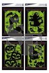 Okenní fólie svítící Halloween. Vyzdobte si okno těmito strašidelnými samolepkami na okno. Vytvoří Vám tu pravou halloweenskou atmosféru. Vhodné jsou na jakékoli hladké plochy, například sklo, výlohy, zrcadla nebo kachličky. Čisté, bez lepidla a opakovaně použitelné.