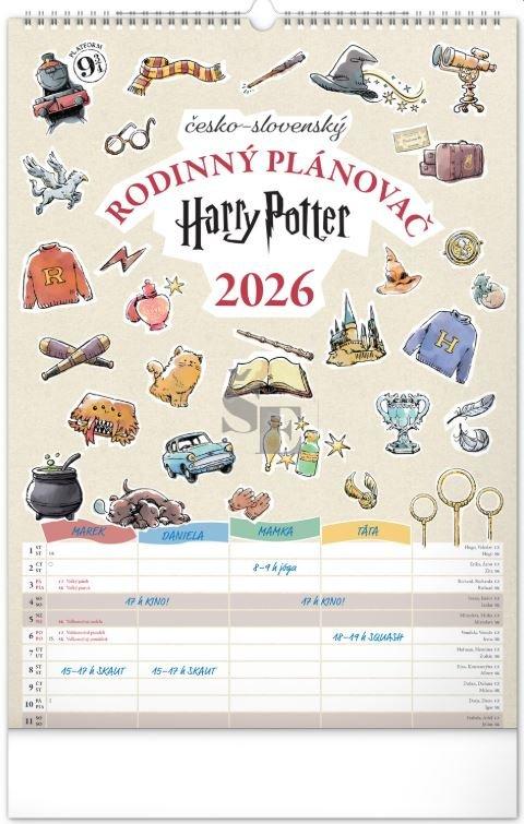 Nástěnný kalendář Rodinný plánovací Harry Potter 2026, 33 x 46 cm