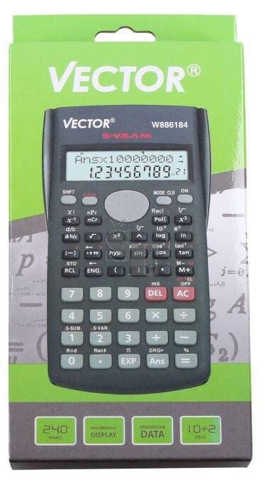 Vědecká kalkulačka VECTOR disponuje 240 funkcemi. • 2-řádkový display • 10+2 digits • Zadání a výsledek se zobrazují současně Baterie jsou součástí balení - 2x LR44