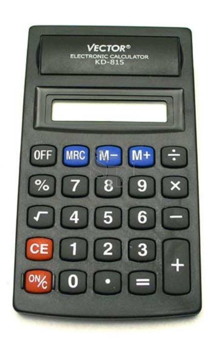 Kapesní kalkulátor Vector KD-815 se základními funkcemi.