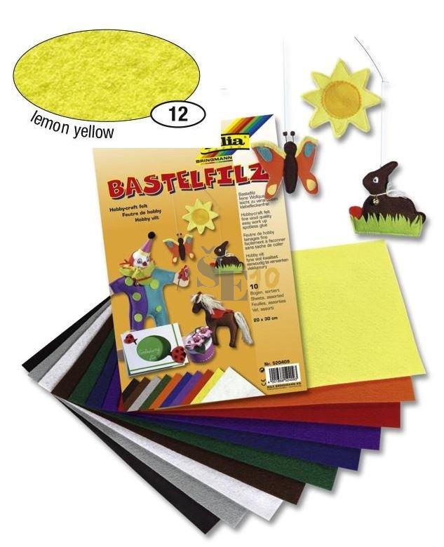 Filc sv.žlutý 1 list 20x30 cm, 150g. Folia