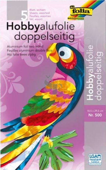 Pět barevných listů hliníkové folie - červená, modrá, zelená, zlatá stříbrná o velikosti papíru 18,5x29,5 cm