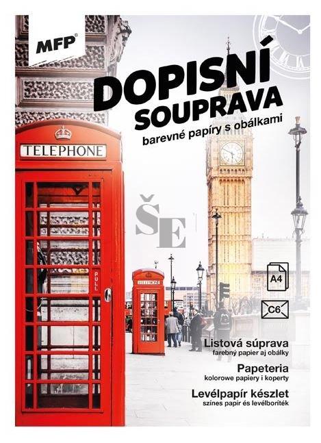 Dopisní souprava obsahující 10 potištěných papírů A4 a 5 potištěných obálek C6.