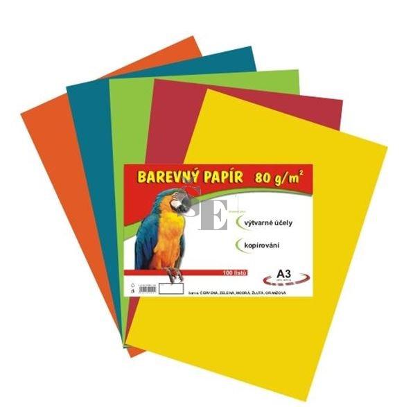 Formát A3 (420 x 297 mm). 100 listů v balení. Plošná hmotnost 80g/m2. Mix 5 barev po 20 listech
