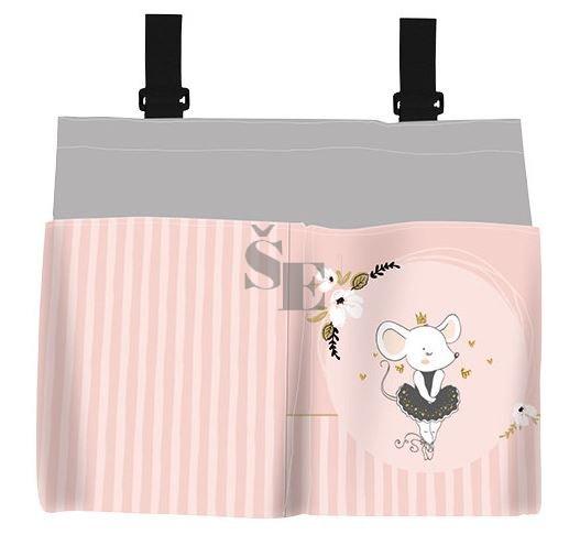 Praktický kapsář na lavici má jednu velkou a dvě menší kapsy a nastavitelné popruhy na suchý zip k přichycení k lavici.