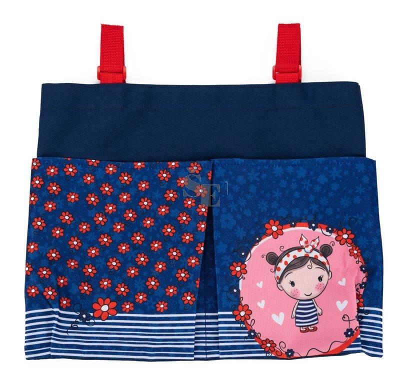 Praktický kapsář na lavici má jednu velkou a dvě menší kapsy a nastavitelné popruhy na suchý zip k přichycení k lavici.