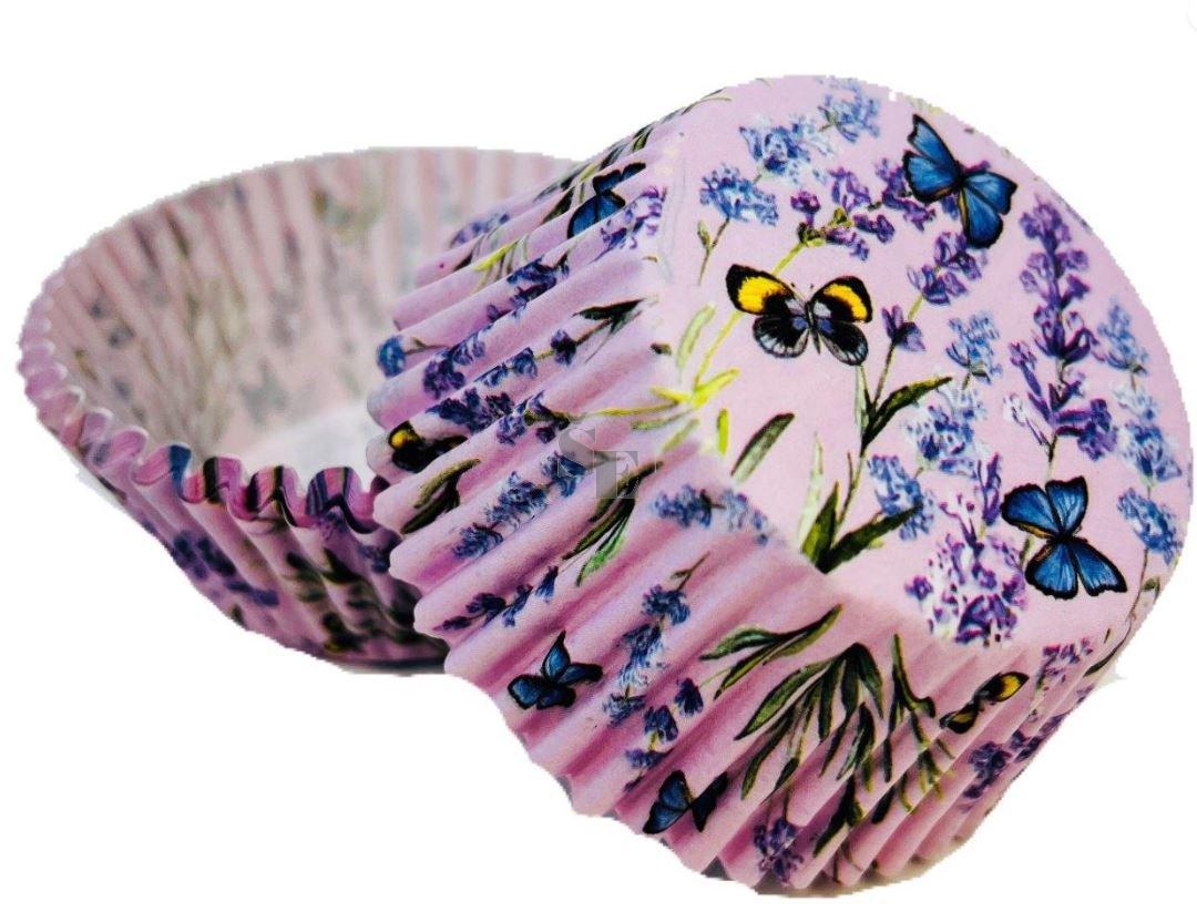 Alvarak Papírové košíčky muffiny a cupcakes 50ks č. Muf-249 Levandule s motýli