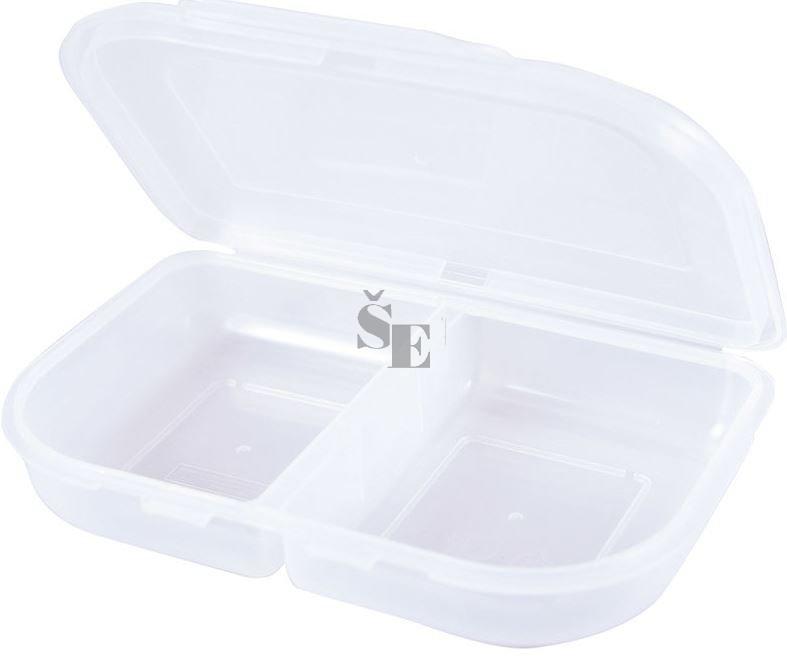 Lunch box na svačinu, materiál plastový vhodný pro potraviny. Dvě komory oddělené přepážkou.