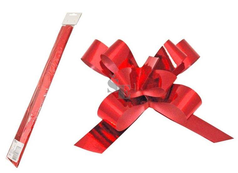 Stahovací stuha v metalické červené barvě. Stahovací stuhy jsou vhodné na ozdobení dárků. Jednoduchým zatažením za konce stuh, vytvoříte nádherný ozdobný květ nebo mašli.
