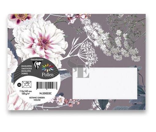 Clairefontaine Obálka barevná C6 BOTANIC GARDEN olizová 20ks fialová 114x162mm