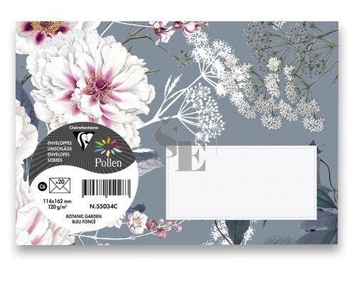Barevné obálky Clairefontaine Botanic Garden v atraktivním designu, formát C6 (114 x 162 mm), 120 g. Balení obsahuje 20 ks obálek.