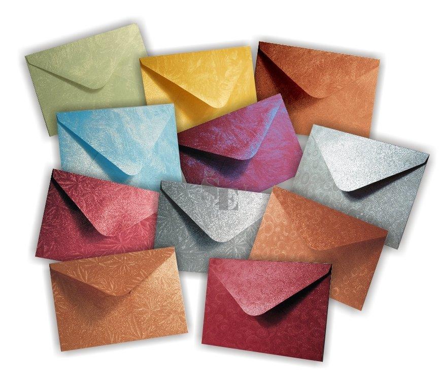Metalové obálky s raženým vzorem vyrobené z kvalitního papíru 80g.