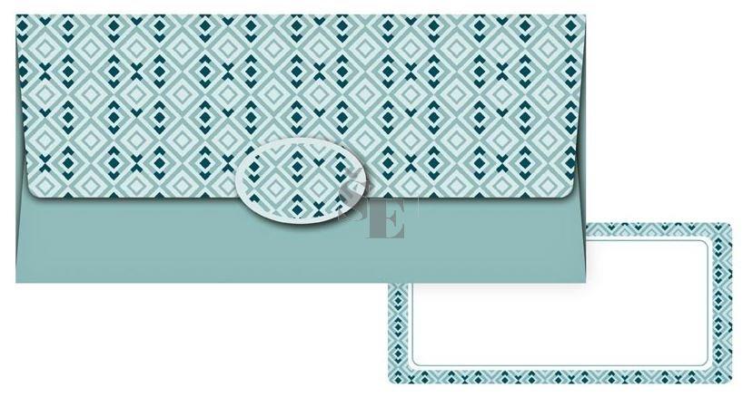 Obálka na peníze v odstínech modré a tyrkysové s elegantním geometrickým vzorem. Ideální pro stylové darování finančního obnosu na různé příležitosti, jako jsou svatby, narozeniny, výročí nebo jiné oslavy. Součástí obálky je kartička pro případný vzkaz, přání či osobní věnování. Uzávěr na přední straně zajišťuje bezpečné uchování obsahu.