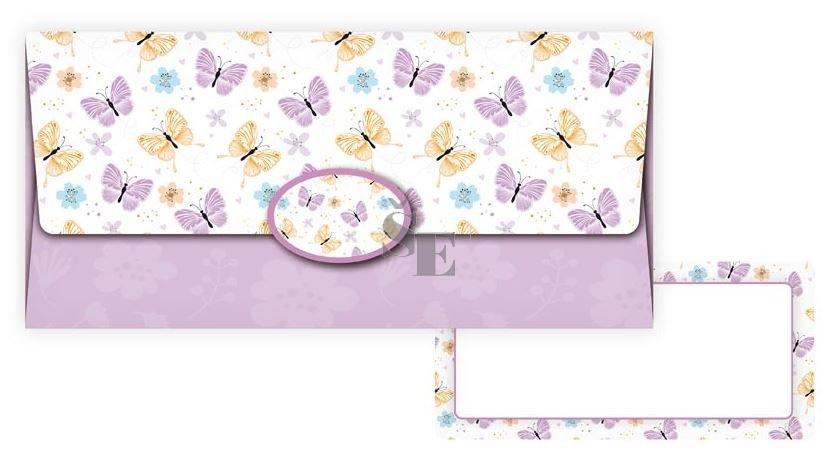 Lehkost a radost v každém detailu – přesně tak působí tato obálka na peníze zdobená něžnými motýly a drobnými květy. Její pastelové barvy navozují pocit hravosti a optimismu, díky čemuž se hodí pro narozeniny, svátky i jiné slavnostní chvíle.