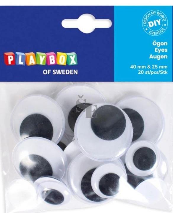 Pohyblivé černobílé oči - lepící , 40mm a 25 mm, 20 ks