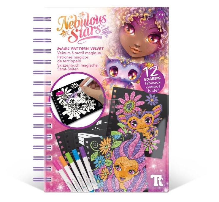 Nebulous Stars Magické omalovánky. 12 sametových desek, 5 mini fixů, barevné pokyny, příběh Orelie.