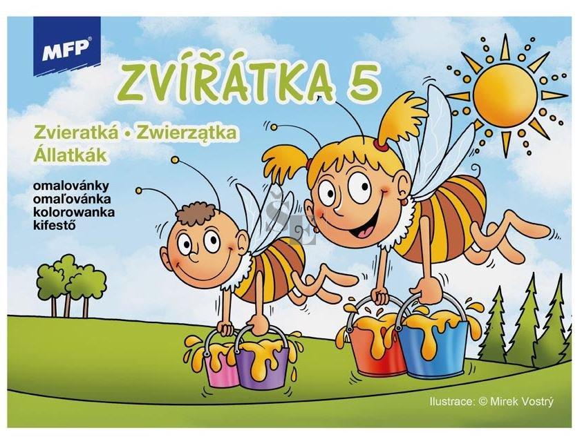 Dětské omalovánky MFP - Zvířátka 5. Udělejte si pohodové odpoledne s dětmi a vybarvěte si obrázek. Tyto omalovánky jsou jednoduché s velkými obrázky, tudíž vhodné i pro ty nejmenší děti. Vybarvování obrázků pomůže rozvíjet řadu schopností a dovedností, zejména má velký vliv na jemnou motoriku ruky. Zakoupit si u náš můžete i kvalitní barevné pastelky.