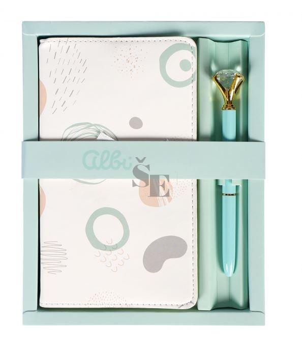 Zdobná mašle dělá ze sady skvělý dárek například k svátku. Třešinkou na dortu je krystalová tužka v barvě sady a oblíbenými nálepkami k dotvoření zápisů.