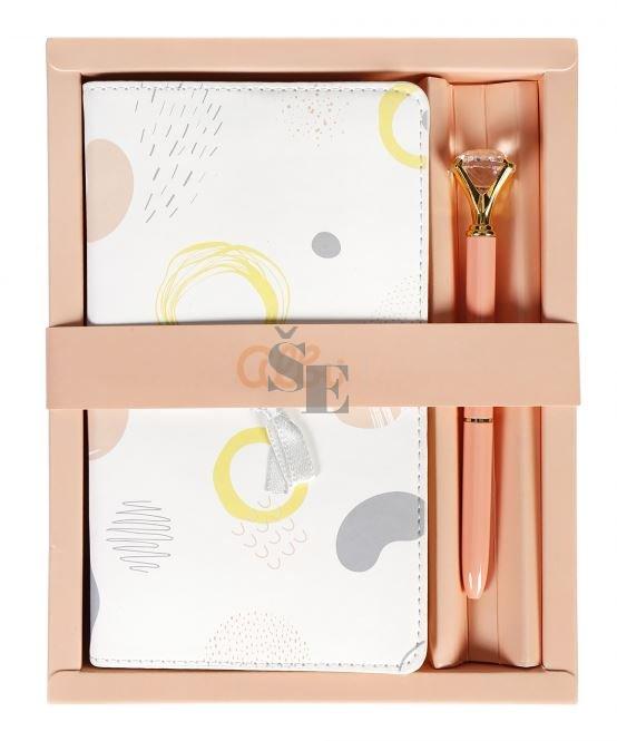 Zdobná mašle dělá ze sady skvělý dárek například k svátku. Třešinkou na dortu je krystalová tužka v barvě sady a oblíbenými nálepkami k dotvoření zápisů.