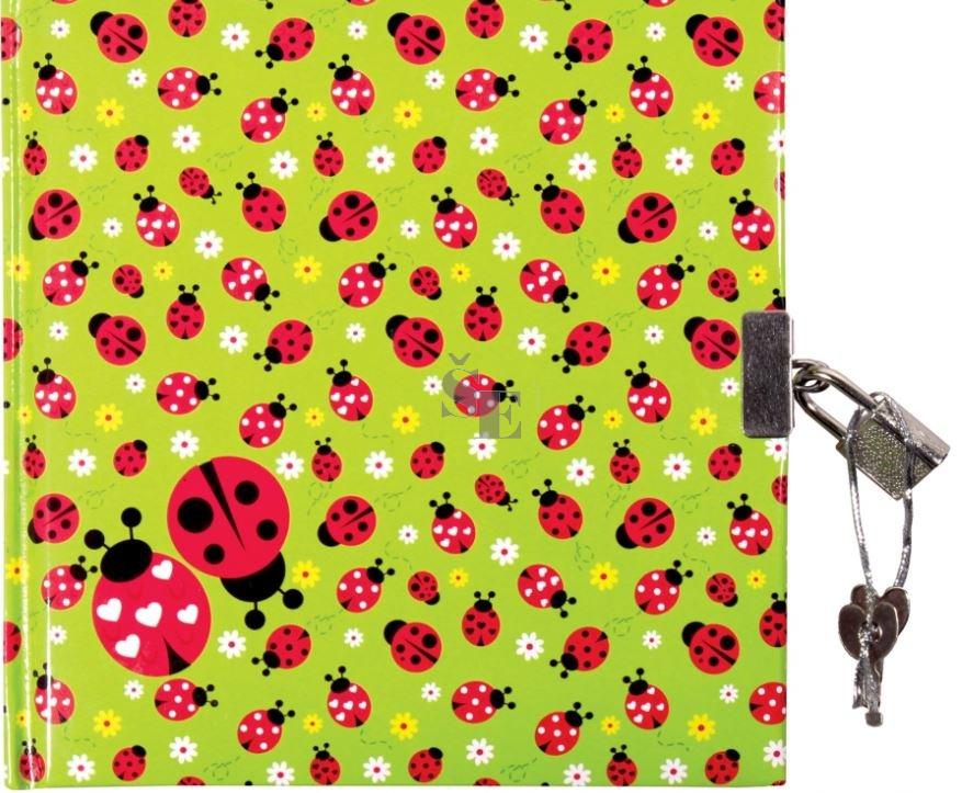 Deníček v krásných pevných deskách s oblíbeným motivem berušky se slušivým zámeček uzamykatelný na klíč .