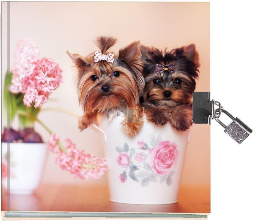 Deníček v krásných pevných deskách s oblíbeným motivem pejsků se slušivým zámeček uzamykatelný na klíč .