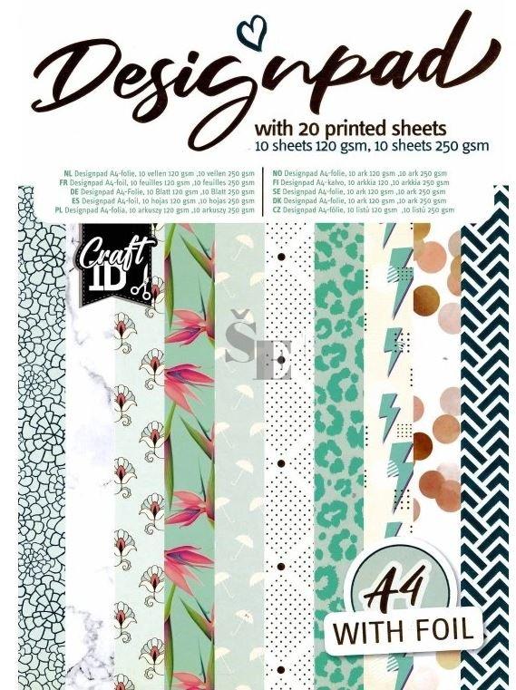 Designový papír A4, 10 listů 120 gms, 10 listů 250 gms - různé motivy a designy.