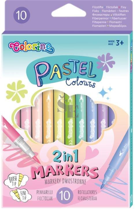 Kulaté oboustranné fixy se štětcovým a tenkým hrotem na druhé straně v oblíbených jemných pastelových barvách. Balení: 10 barev.
