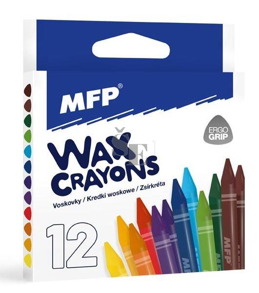 Set 12 ks barevných trojhranných voskovek různých barev. Víte, proč byste si měli koupit zrovna tyto voskovky? Protože trojhranný ergonomický tvar usnadňuje dětem správné držení, zlepšuje motoriku ruky a navíc je kreslení voskovkami zabaví na dlouhé hodiny. Díky zesílení jsou tyto voskovky vhodné i pro malé děti. Snadno vypratelné z většiny textilií.