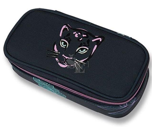 Penál Leopard z řady Walker Fame na psací potřeby s uzavíráním na zip. Horní klopa je s kapsou uzavíratelnou na zip a se 2 kapsičkami. Rozložitelná prostřední klopa je s 20 poutky na tužky, uzavírání na suchý zip.