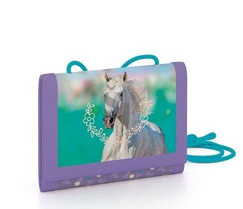 Praktická textilní peněženka na suchý zip. Vzadu je uzavíratelná kapsička na drobné, uvnitř jedna přihrádka na bankovky, šest kapsiček na karty a jedna průhledná kapsa.