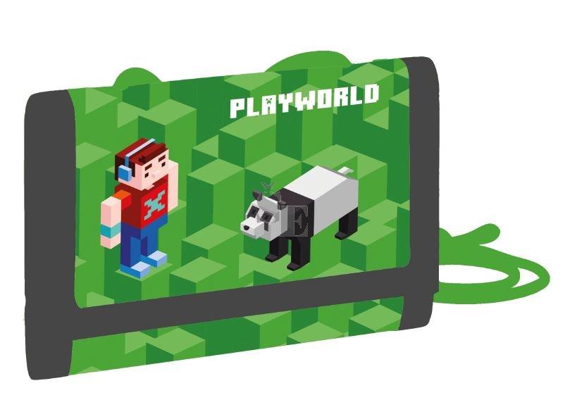 Praktická textilní peněženka na suchý zip. Vzadu je uzavíratelná kapsička na drobné, uvnitř jedna přihrádka na bankovky, šest kapsiček na karty a jedna průhledná kapsa.